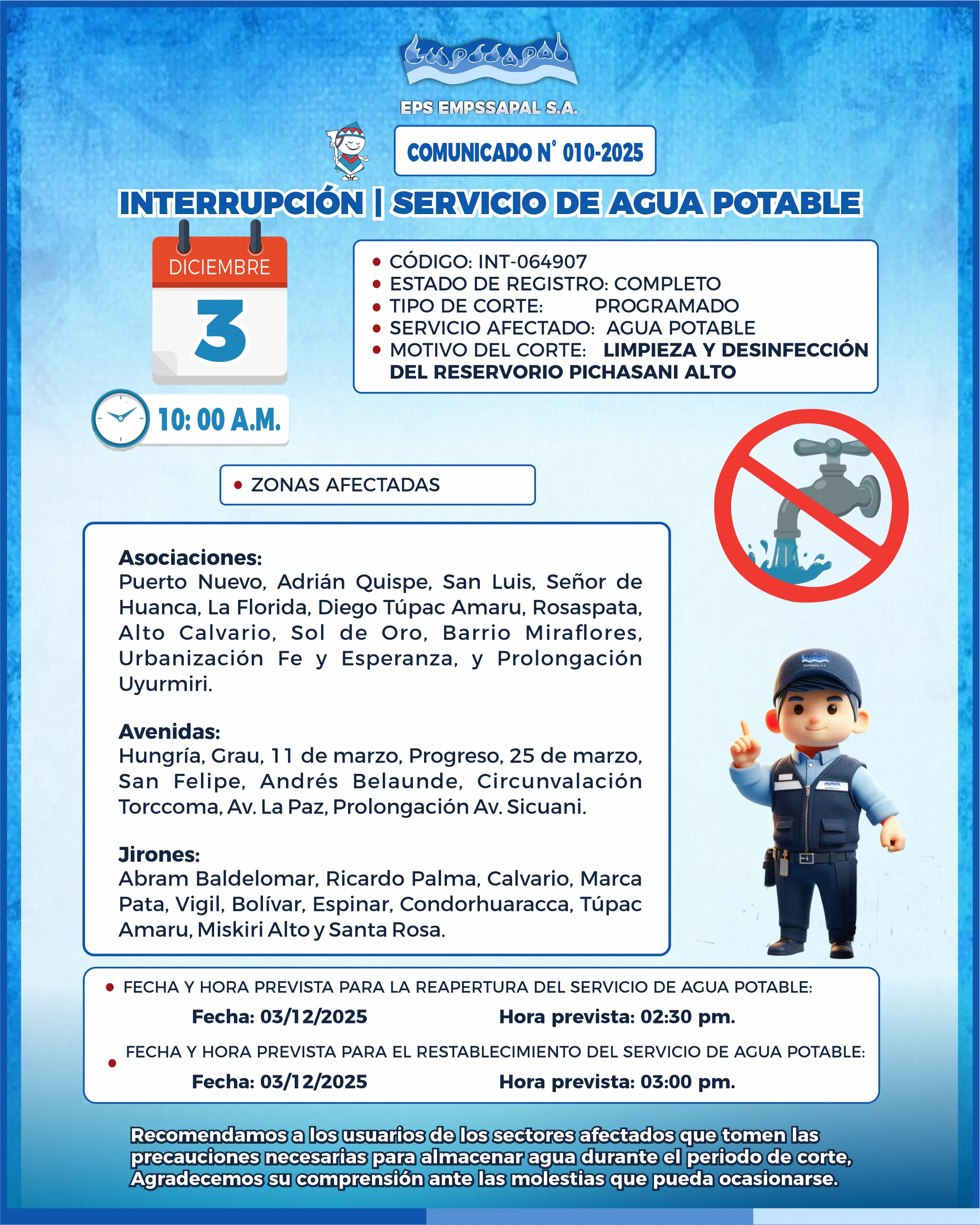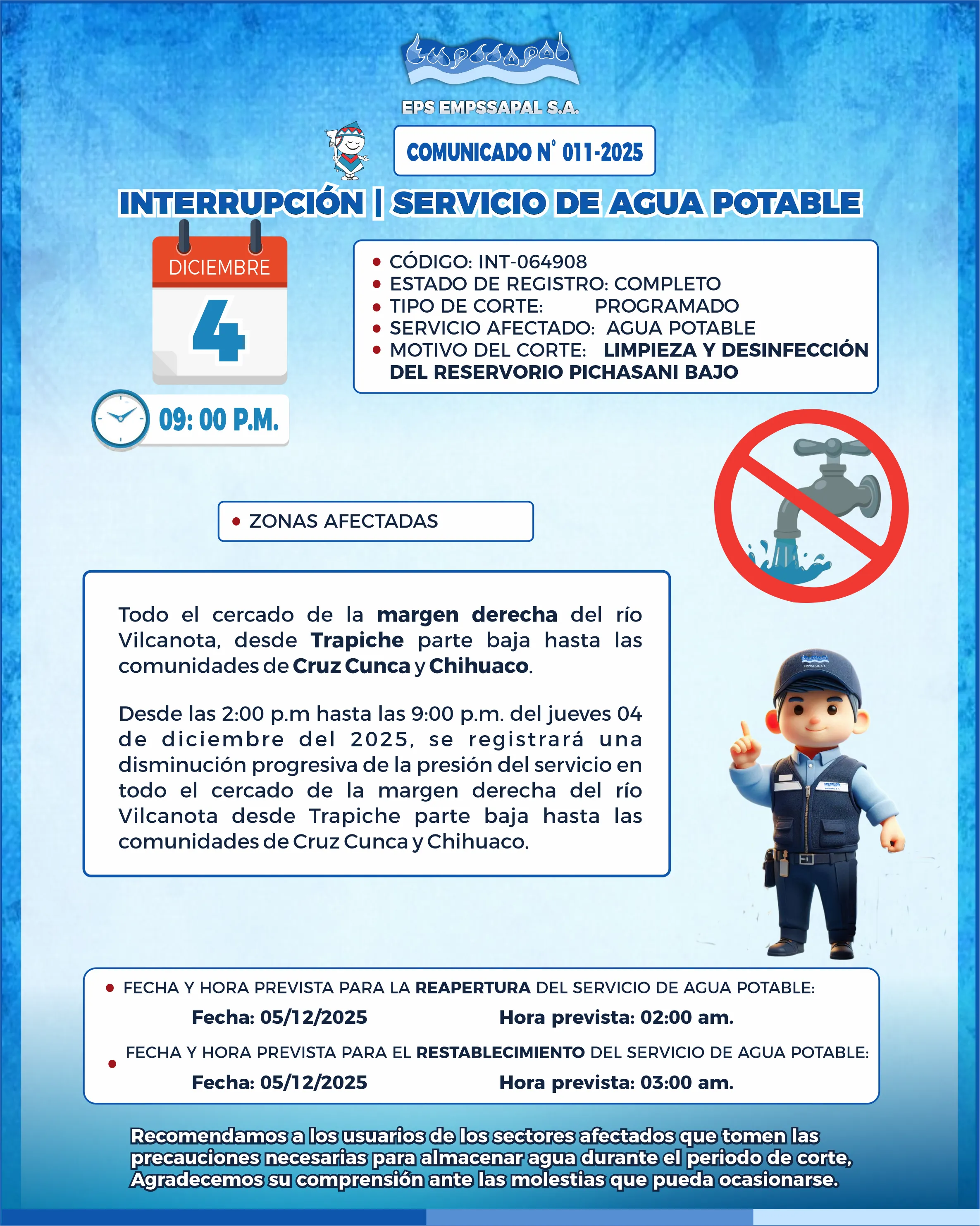 PROGRAMA DE MANTENIMIENTO, LIMPIEZA, DESINFECCION Y PURGA DE REDES DE DISTRIBUCION - RESERVORIO DE PICHASANI BAJO